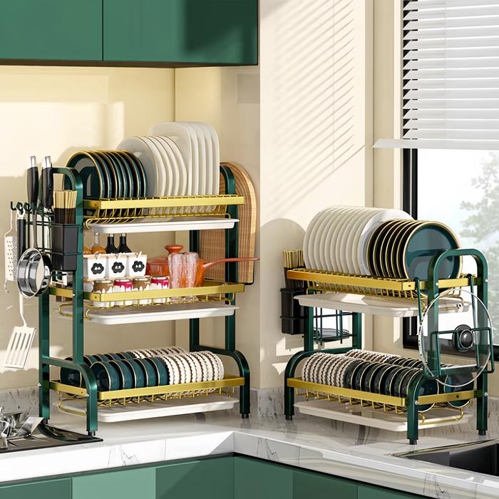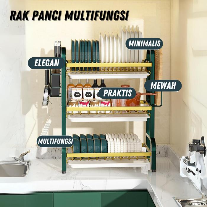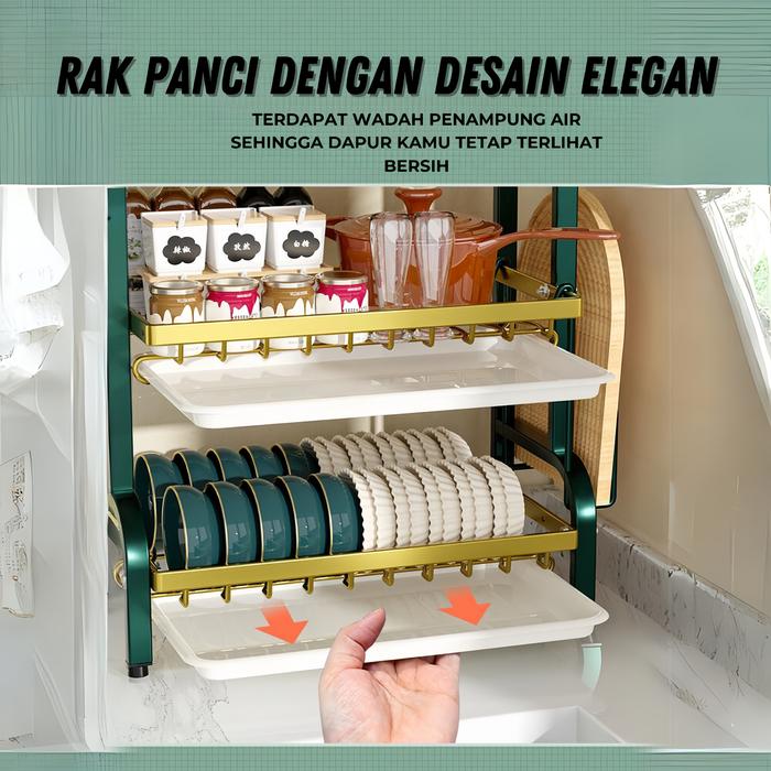 Rak Piring Dapur Stainless Steel Penyimpanan Rak Pengering Piring Rak Mangkuk Piring 2/3 Tingkat
