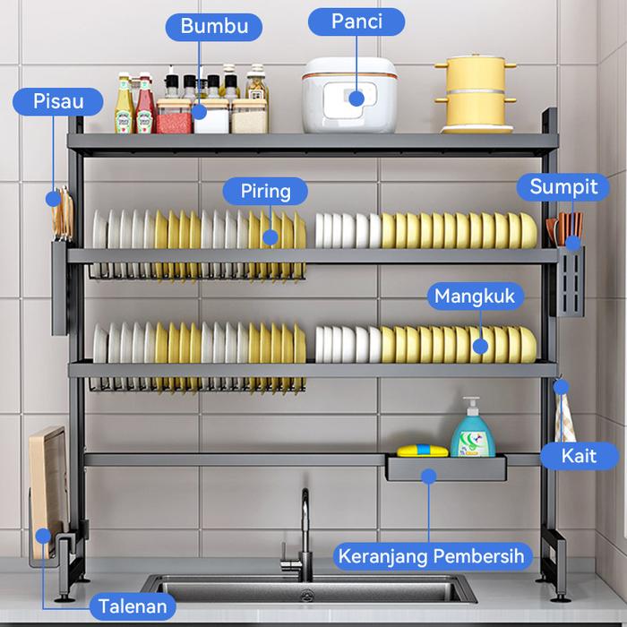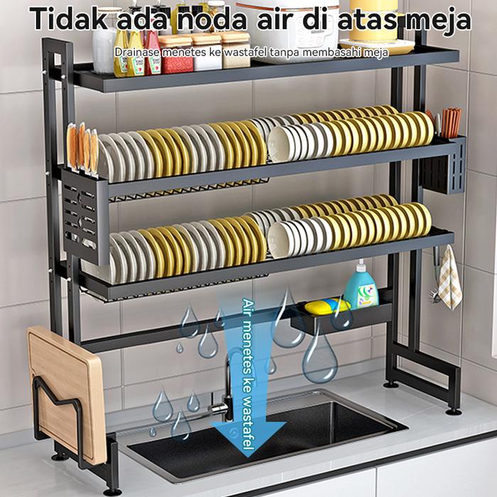 Rak Piring Rak Cuci Piring Wastafel Rak Dapur Anti Karat Stainless Steel Rak Piring Dengan Aksesoris