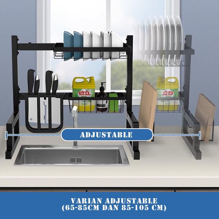 Rak Diatas Wastafel Stainless Hitam Rak Penyimpanan Piring Rak Dapur Cuci Piring