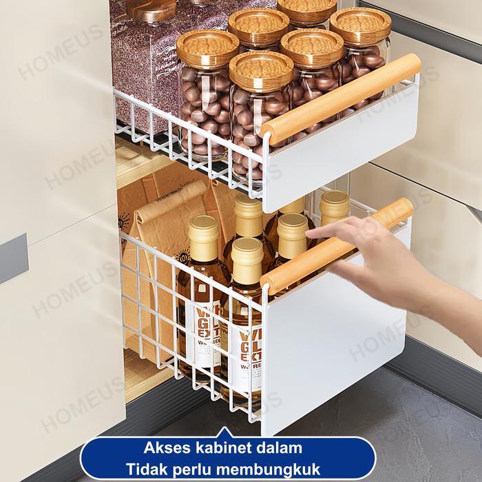Homeus Rak Piring Pengering Piring Lemari Dapur Tarik Keluar Rak Piring Penyelenggara Rak
