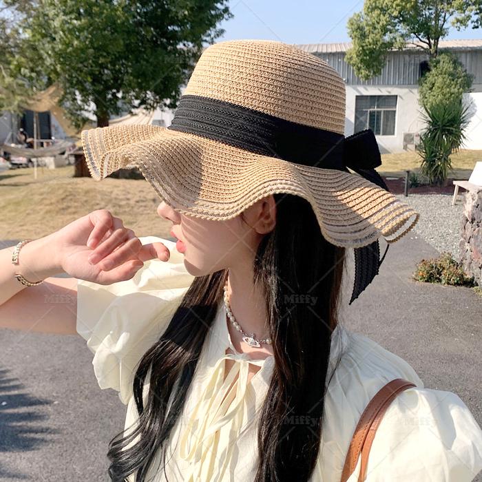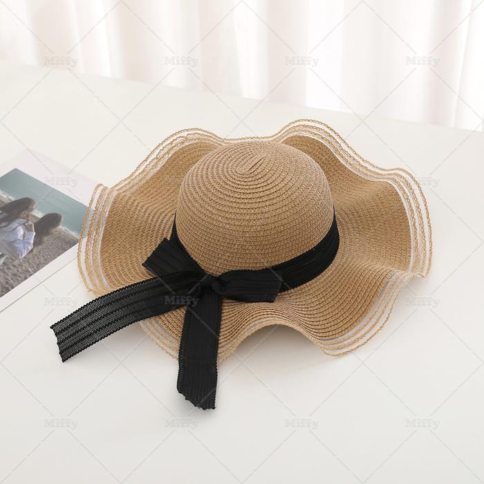 Miffy - Topi Pantai Gelombang Pita Bahan Rajut Women Summer Hat Fashion - Top-115 Khaki