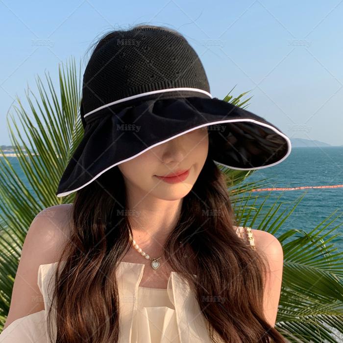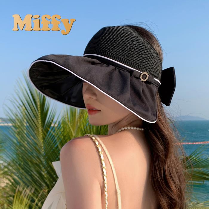Miffy - Topi Visor Lipat Wanita Aksen Pita Women Summer Hat Topi Pantai Gaya Casual - Top-110 Hitam