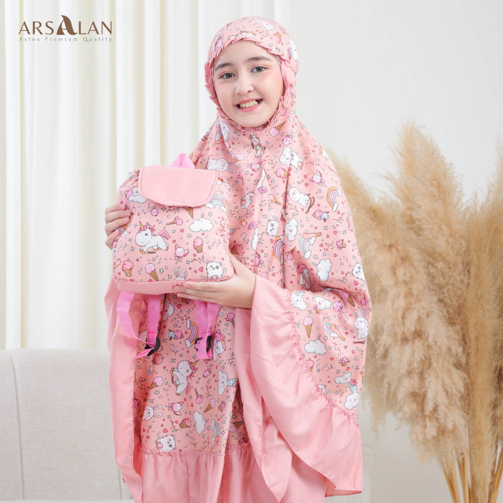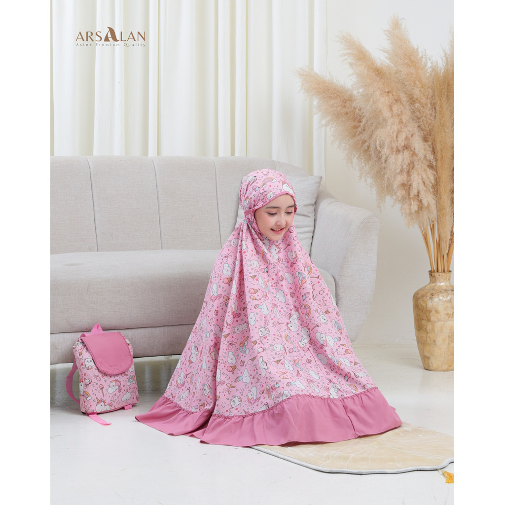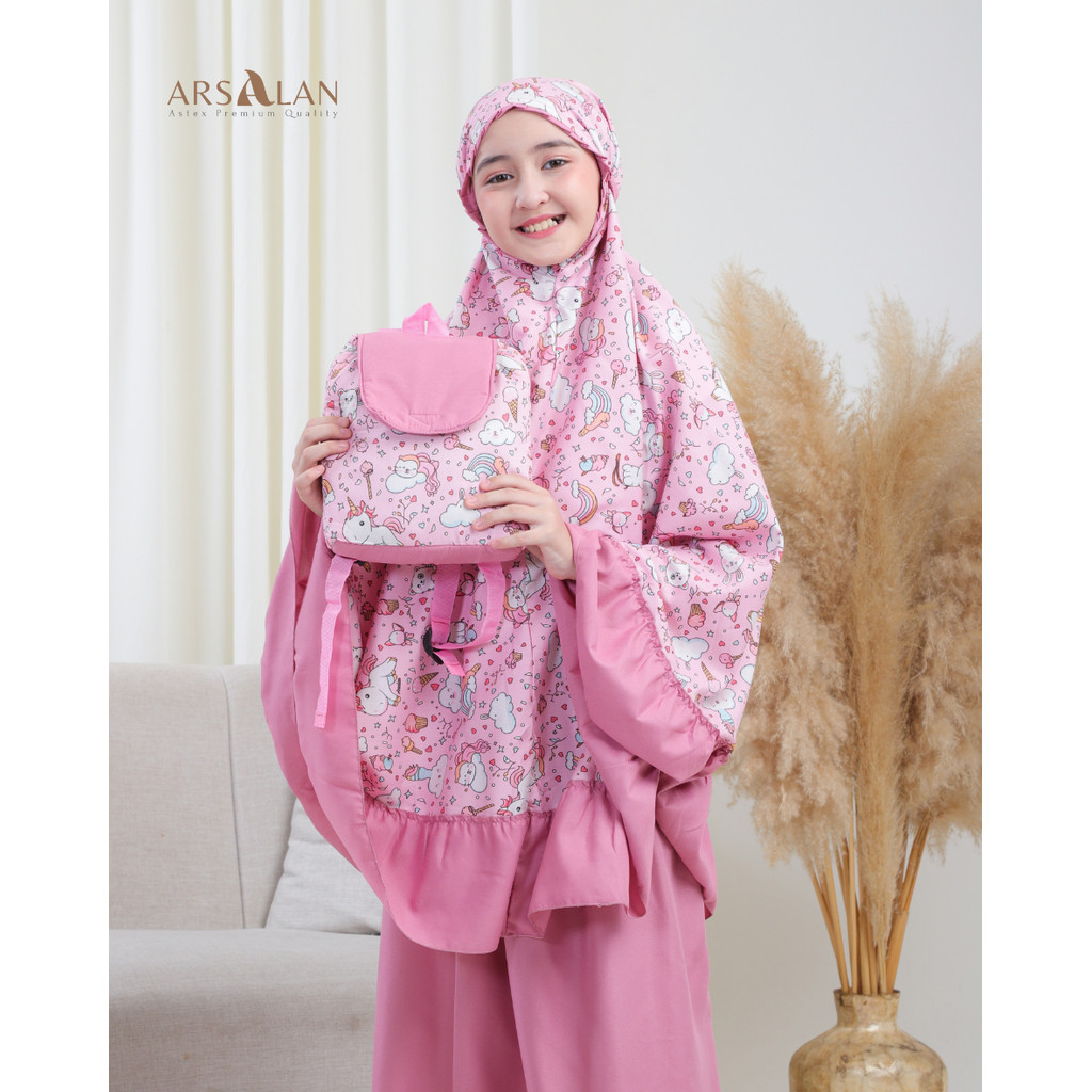 Arsalan - Mukena Anak Tas Ransel Karakter Unicorn Rayon Kombinasi Katun Mikro Usia 2 - 12 Tahun