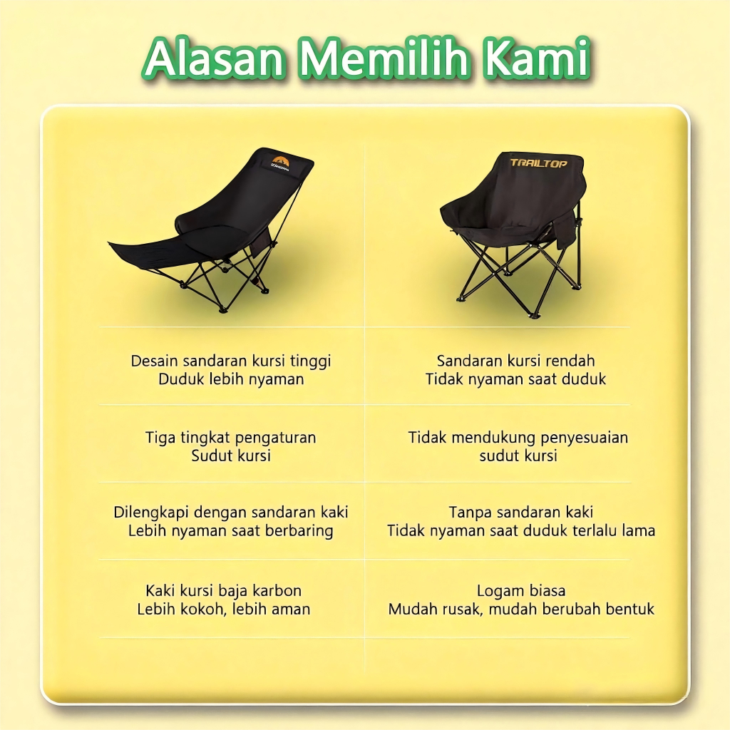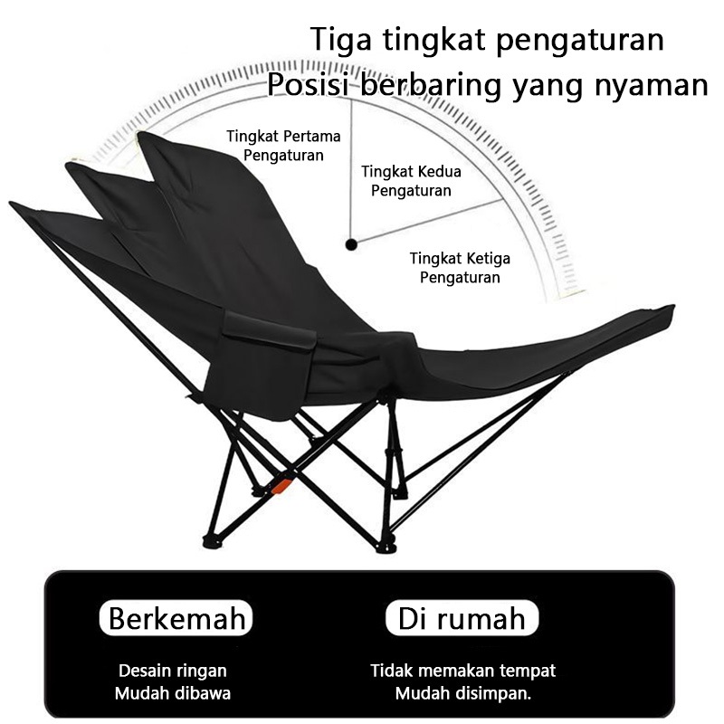 OutdoorKu Kursi Lipat 4 Posisi Adjustable Sandaran Tinggi Kursi Lipat Outdoor Beban 200KG Tas Gratis
