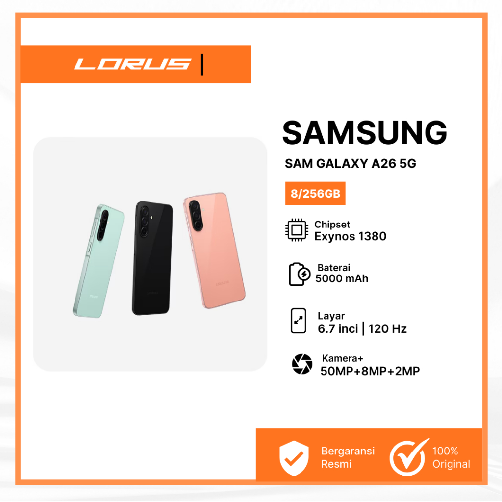 Samsung Galaxy A26 8/256GB 5G | Super AMOLED | Exynos 1380 | Baterai 5000 mAh | Pengisian cepat 25W