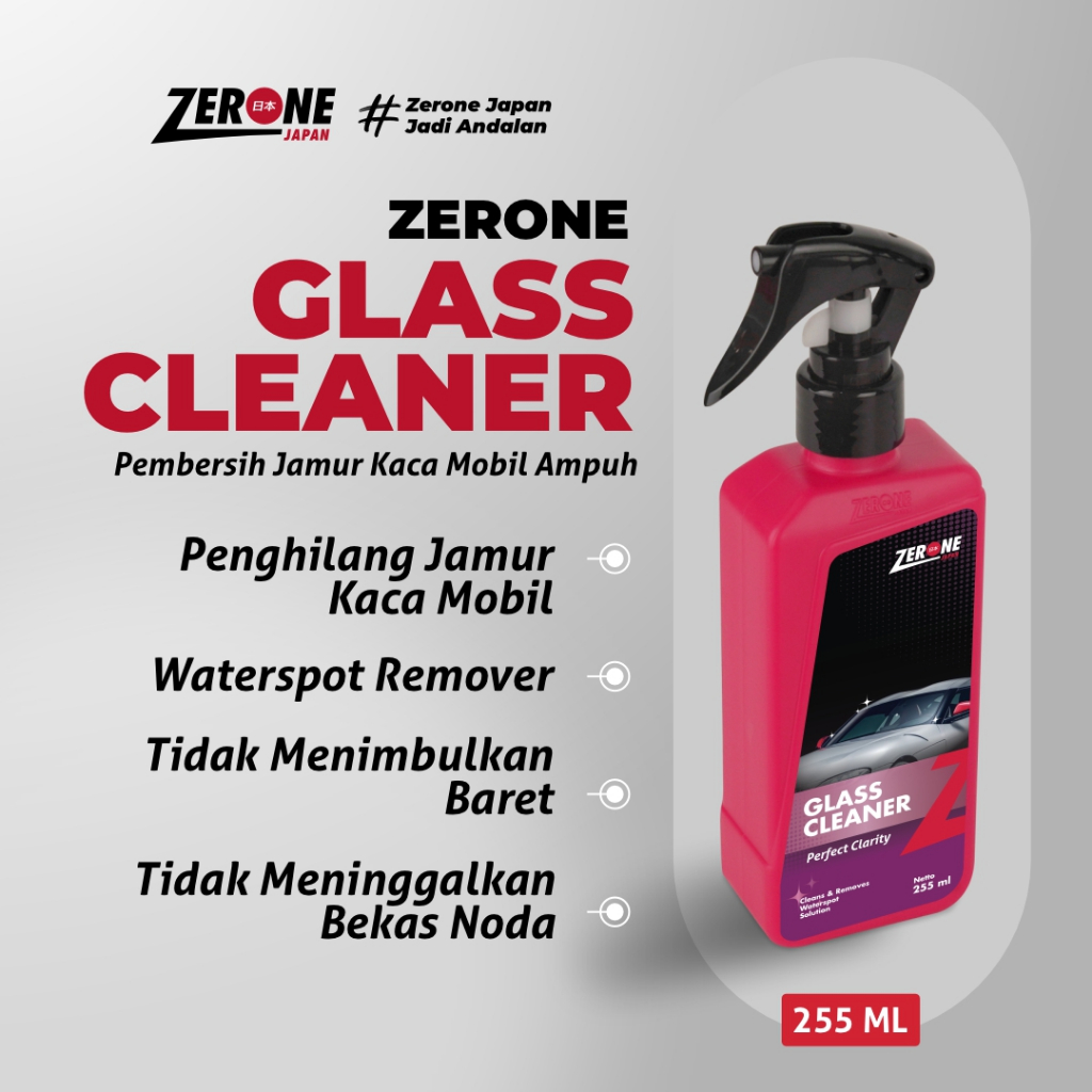 Cairan Pembersih Jamur Kaca Mobil Zerone Japan Glass Cleaner Anti Air 255ml