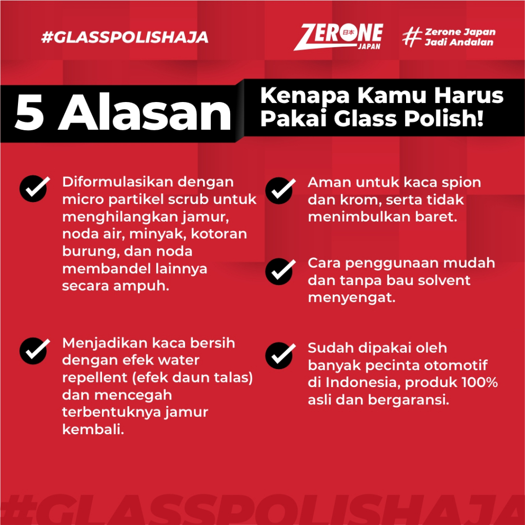 Pembersih Jamur Kaca Mobil Glass Polish Zerone Japan