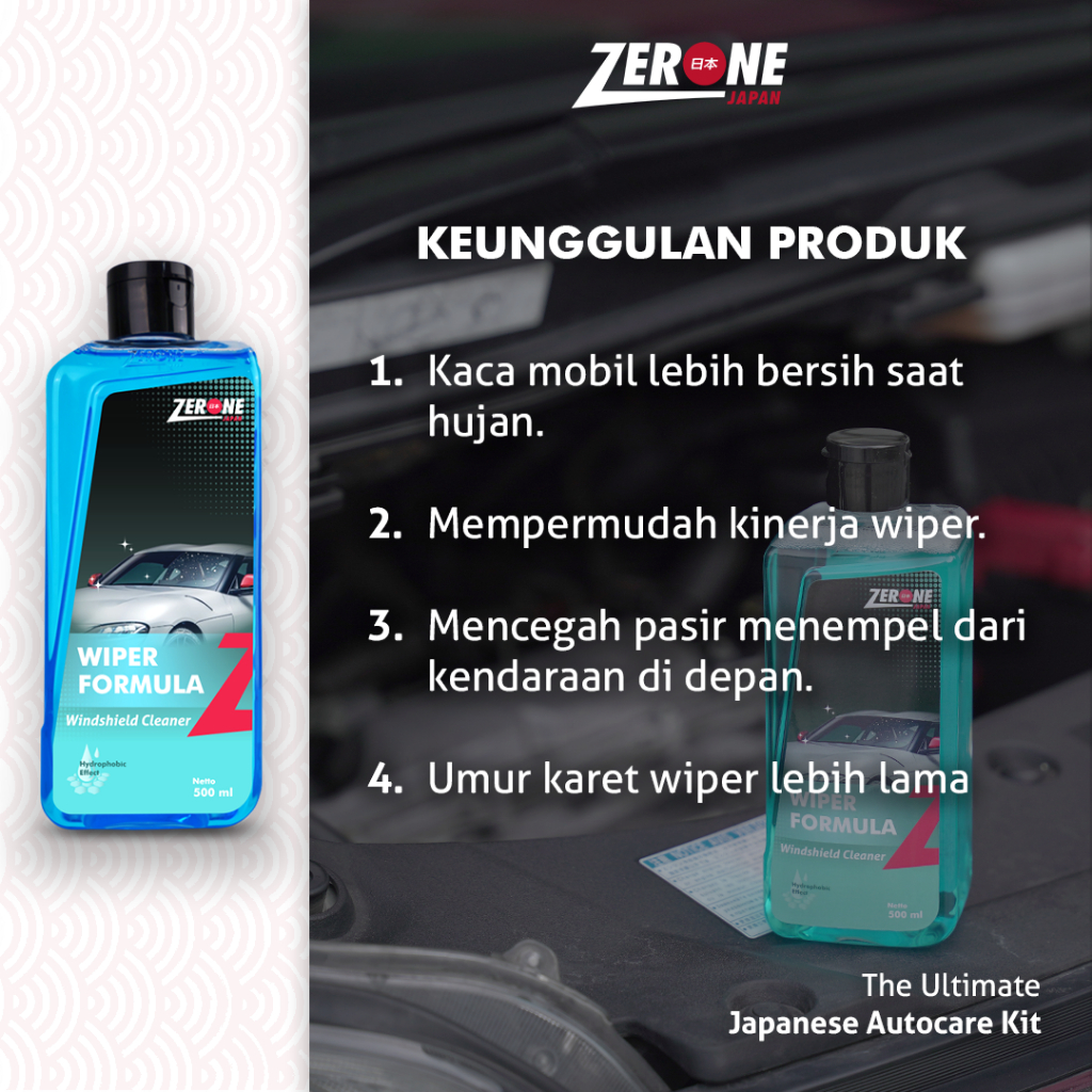 Zerone Japan Wiper Fluid Cairan Pembersih Kaca Mobil Konsentrat Anti Jamur Anti Embun