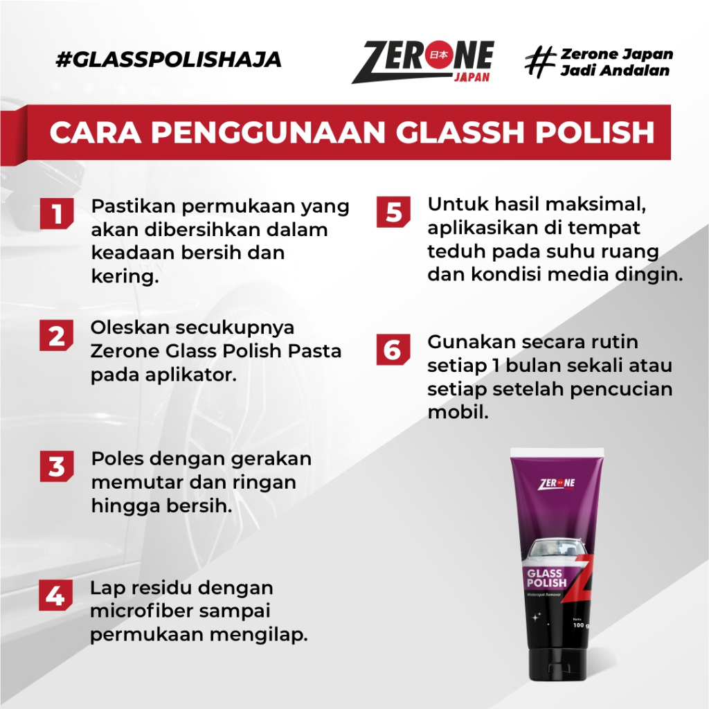 Zerone Japan Glass Polish Pembersih Jamur Kaca Mobil Anti Pelangi & Baret