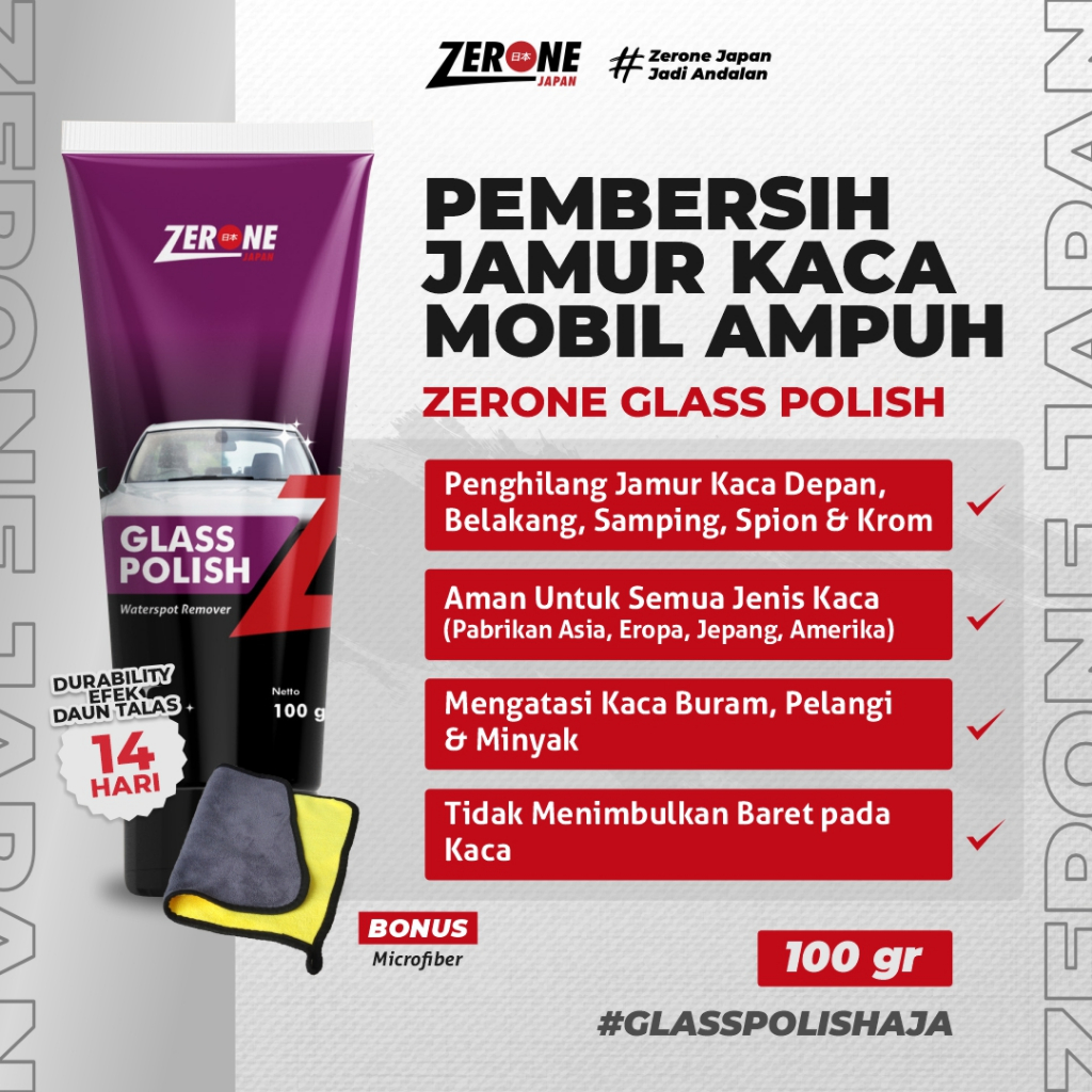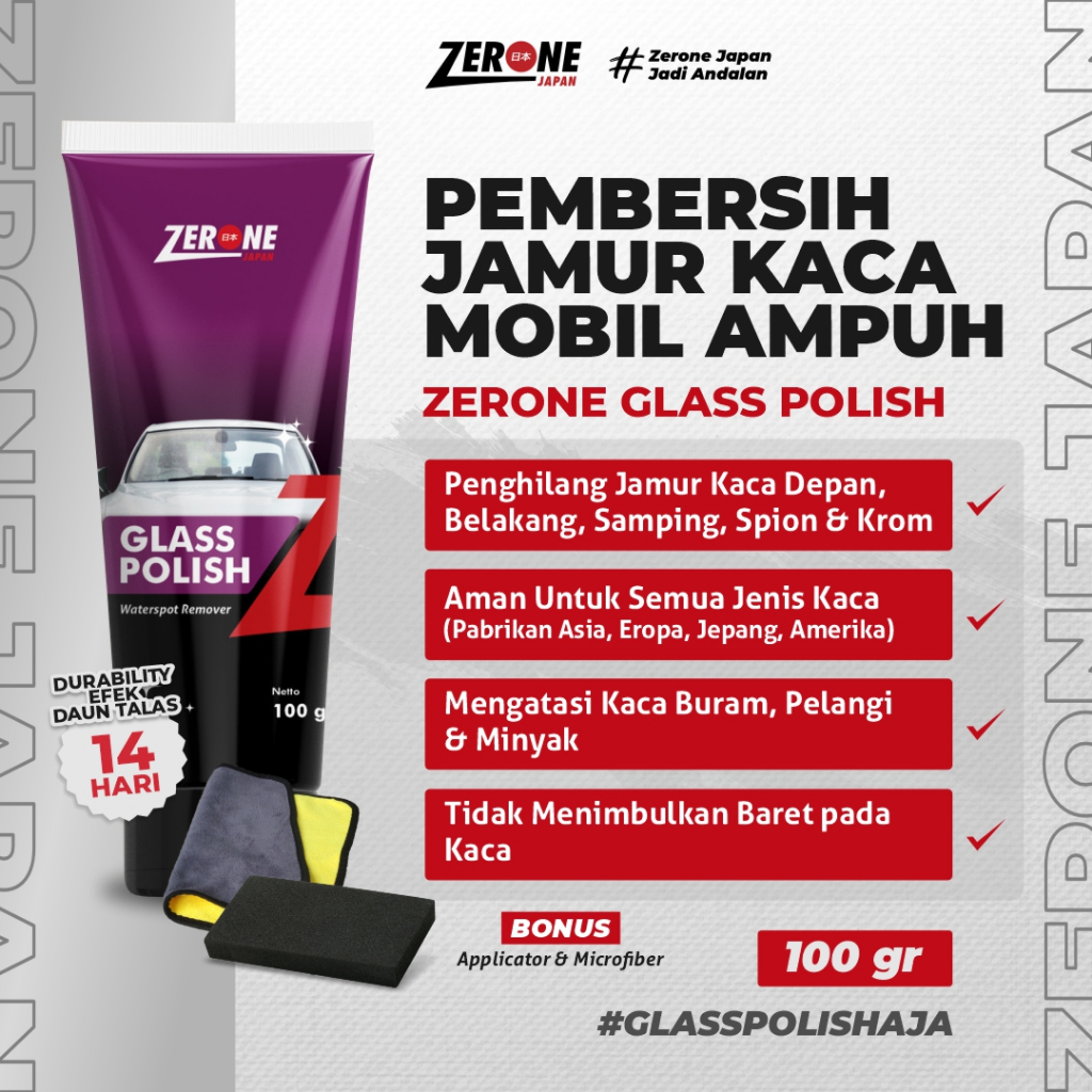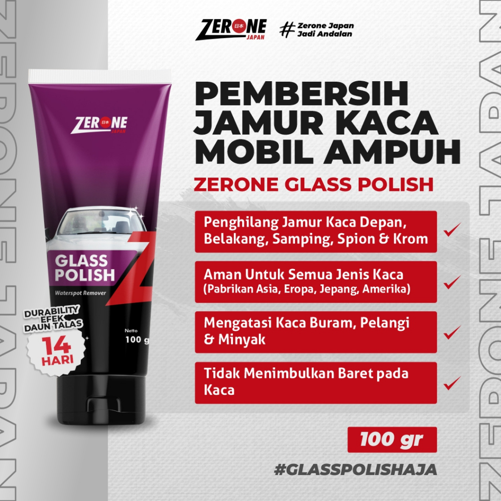 Zerone Glass Polish 100ml – Pembersih Jamur Kaca Mobil, Waterspot Remover, Cairan Pengkilap Kaca