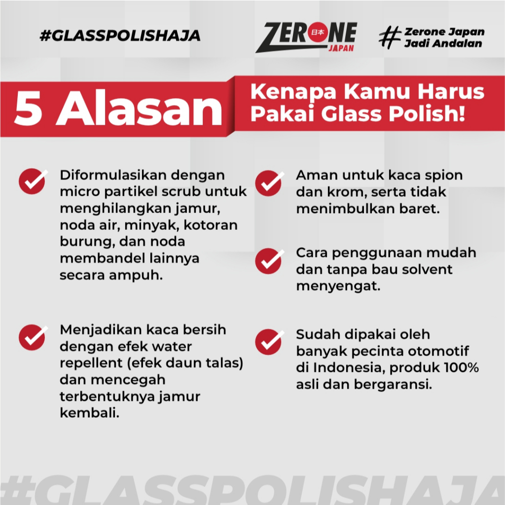 Zerone Japan Glash polish Pembersih Jamur Kaca Mobil Membandel Kerak Jamur Kaca 100 gram