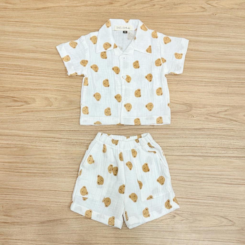 Kemeja Baby Bear Anak dan Bayi Laki-Laki Lengan Pendek Casual Formal Baby (Usia 0 bulan - 2 Tahun)