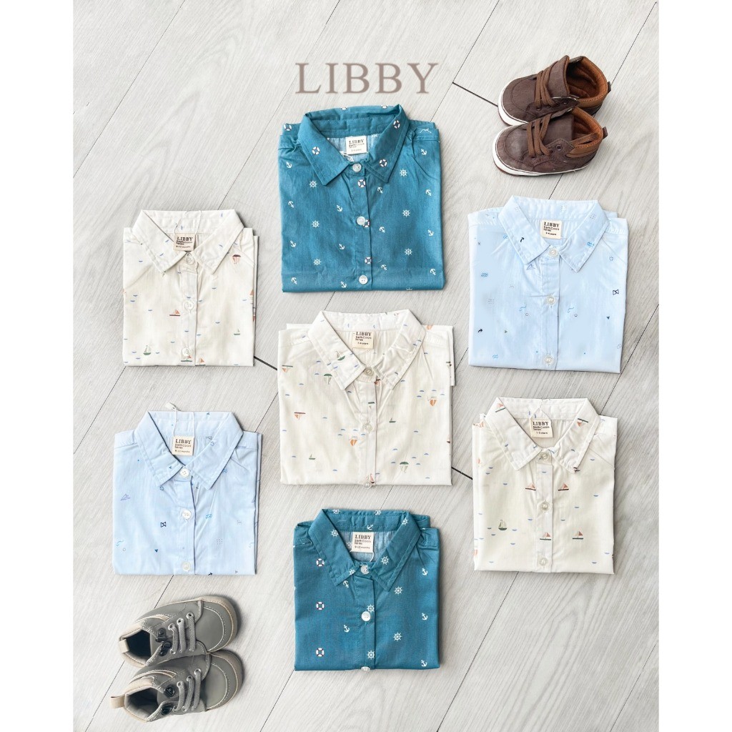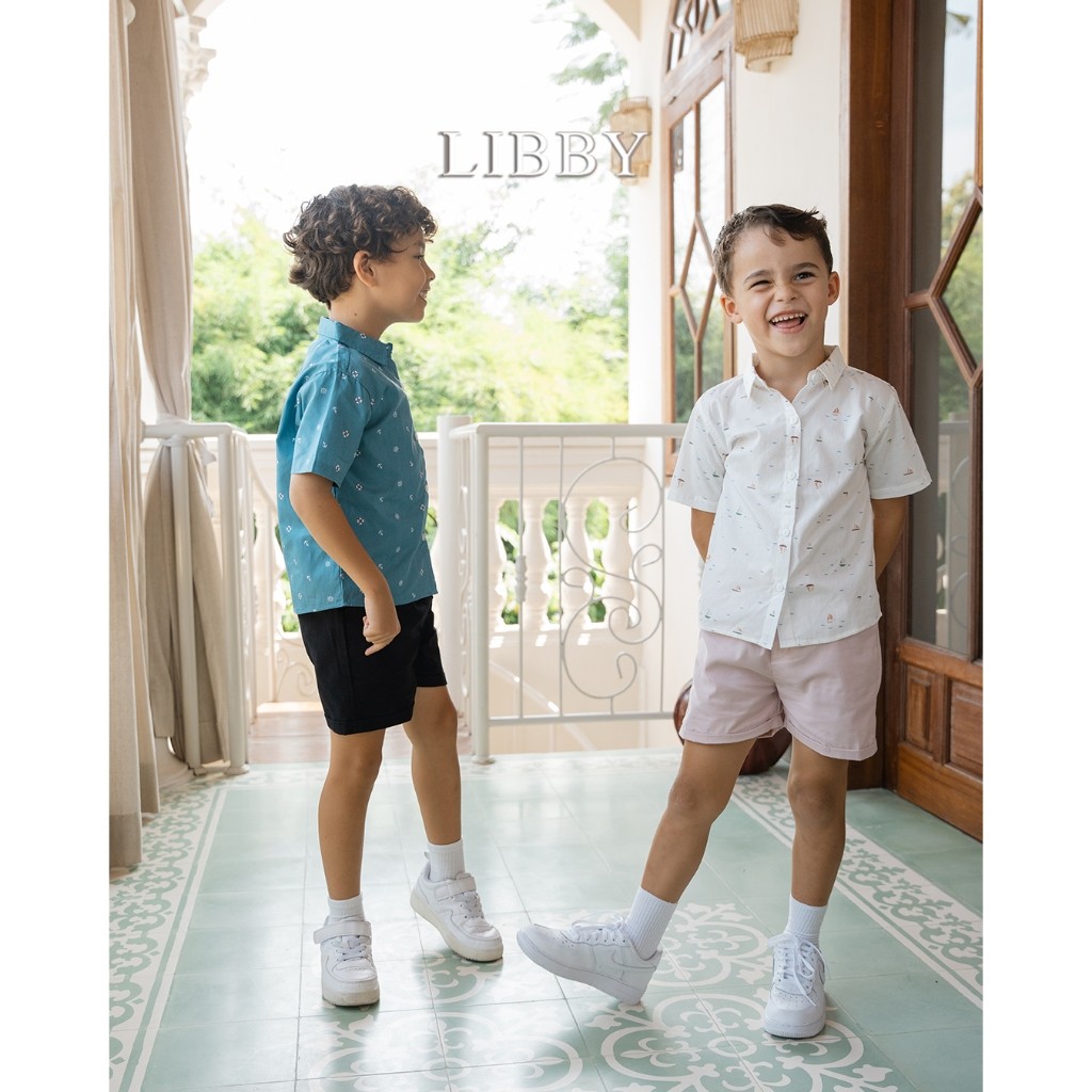 LIBBY Theo Shirt | Baju Kemeja Atasan Lengan Pendek Katun Motif Anak Laki Laki Cowok Lucu 9 Bulan – 6 Tahun Murah Promo
