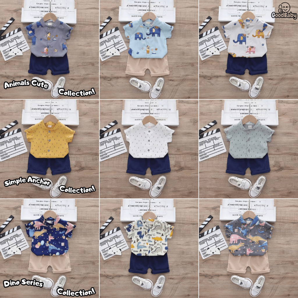 Goodbaby Setelan Kemeja Anak Bahan Katun Motif Hewan Lucu / Kemeja Bayi Import / Setelan Anak KB25