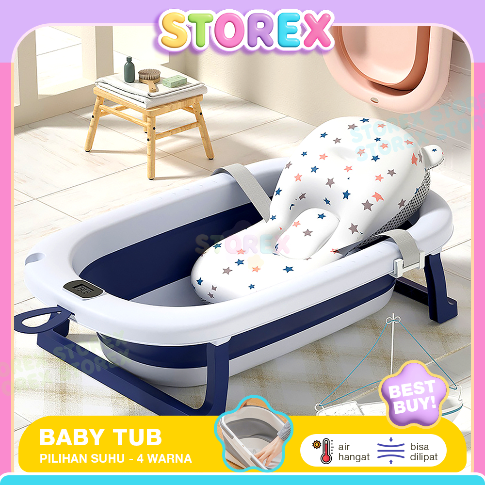Storex Foldable Baby Bath Tub Bak Mandi Bayi Lipat dengan Pengukur Suhu Tempat Mandi Bayi Portable