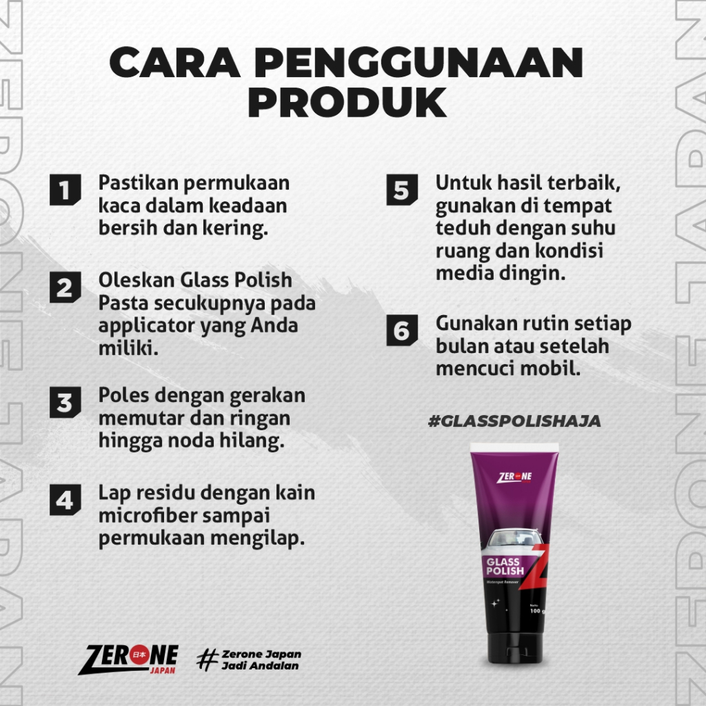 Zerone Japan Glass Polish 100ml - Pembersih Jamur Kaca Mobil Anti Gores Hasil Kilap Maksimal [2 BOTOL]