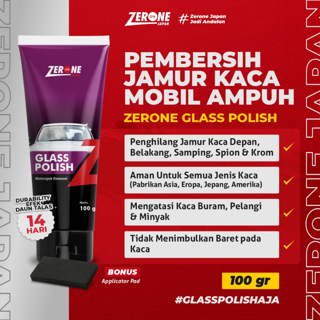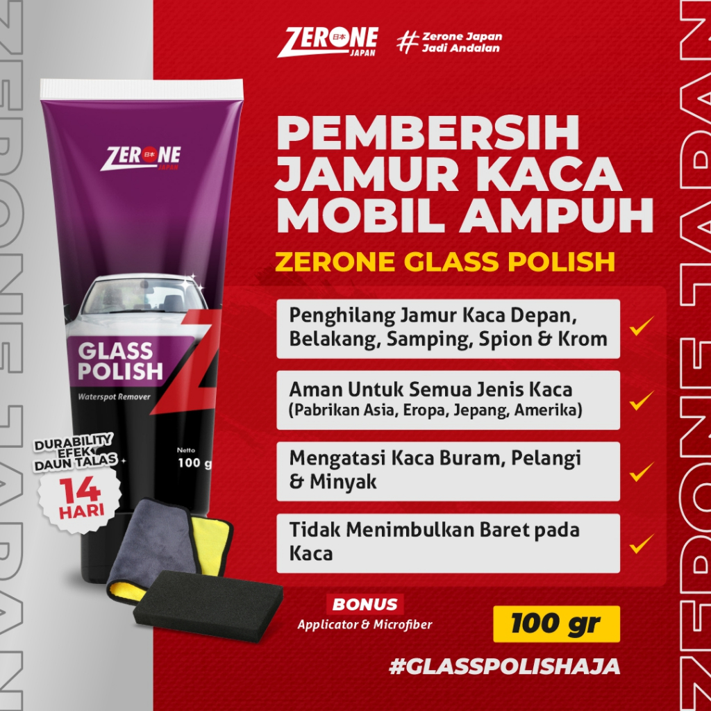 Pembersih Jamur Kaca Mobil Zerone Glass Polish Kaca Mobil Seperti Baru [ INCLUDE APLIKATOR & MICROFIBER ]