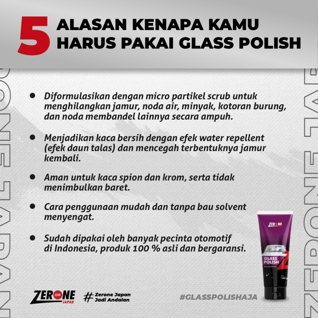 Zerone Glass Polish 100 Gram Pembersih Jamur Kaca Mobil Anti Blur Pelangi