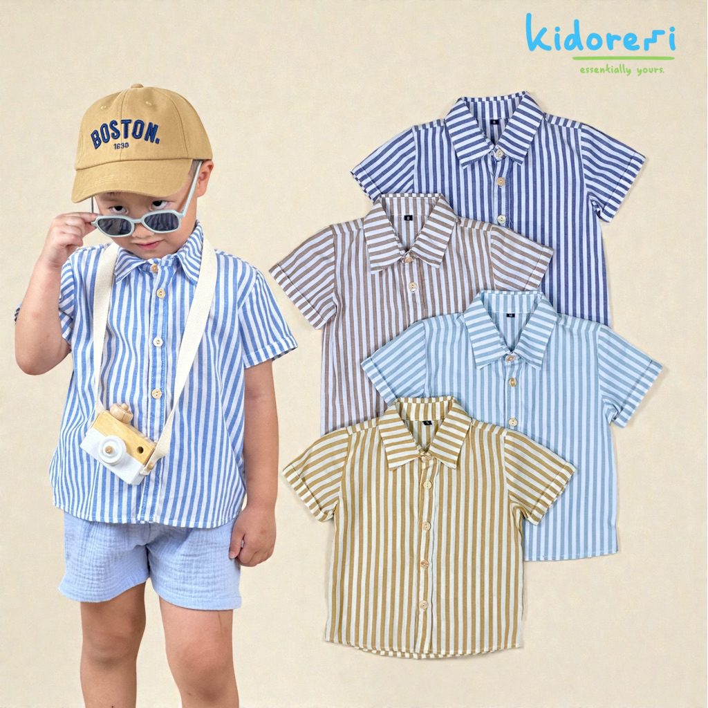 Kidoremi Regular Fit Striped Shirt - Kemeja Anak Laki-Laki Perempuan Katun Garis 1-5 Tahun