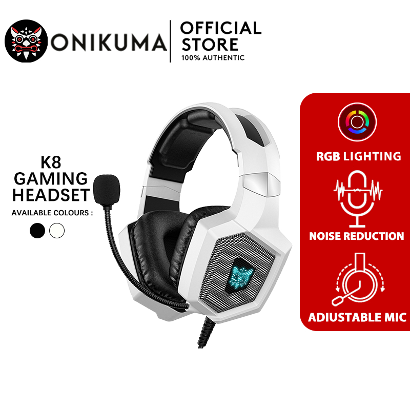 [NEW] Onikuma Gaming K8 White Noise Cancelling Headphone Super Bass Headset Gamedengan Mikrofon earphone RGB LED Cocok U