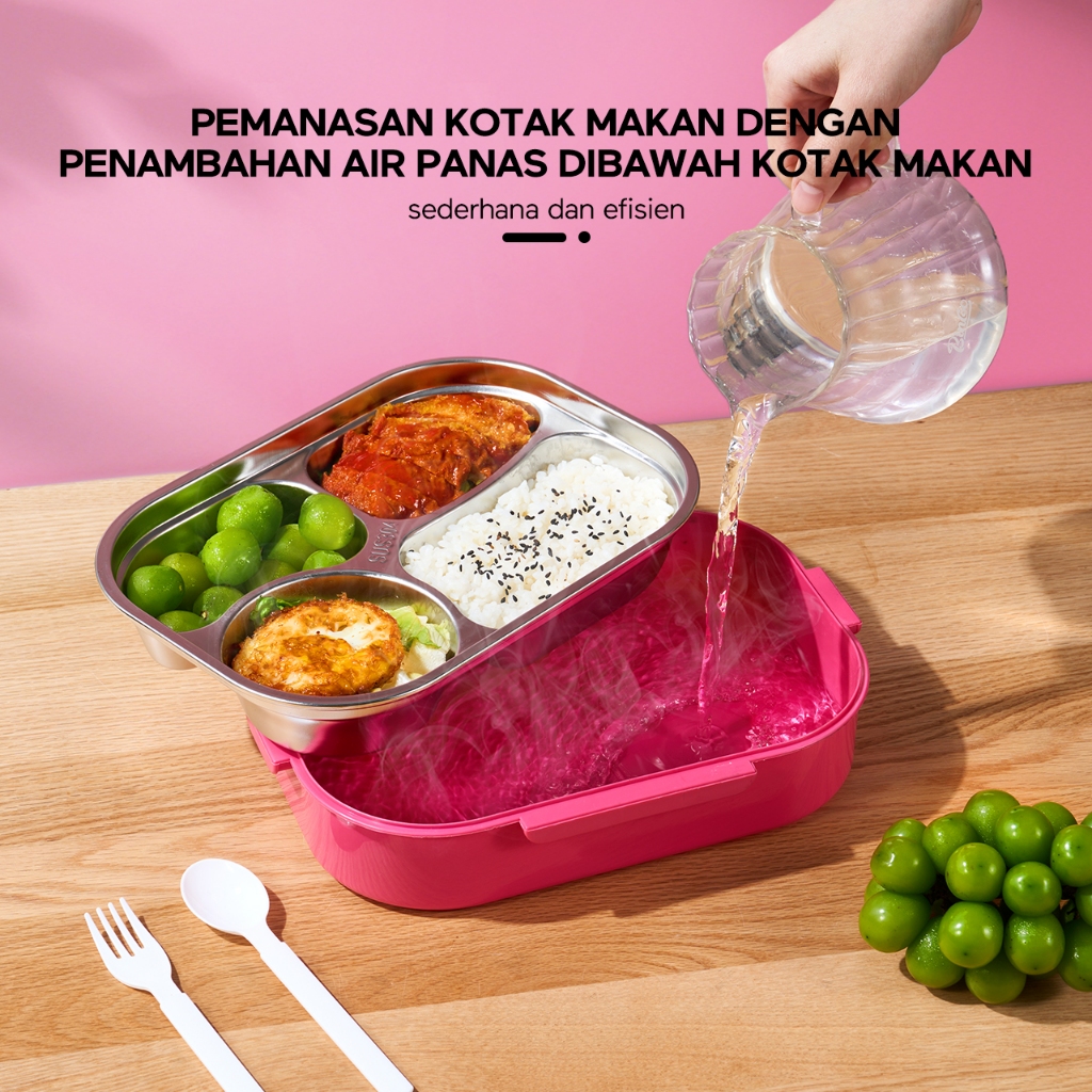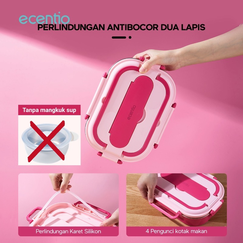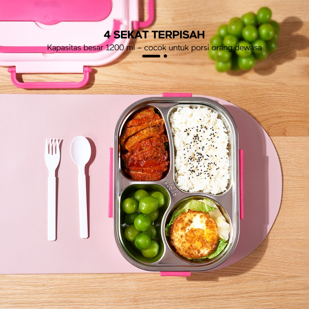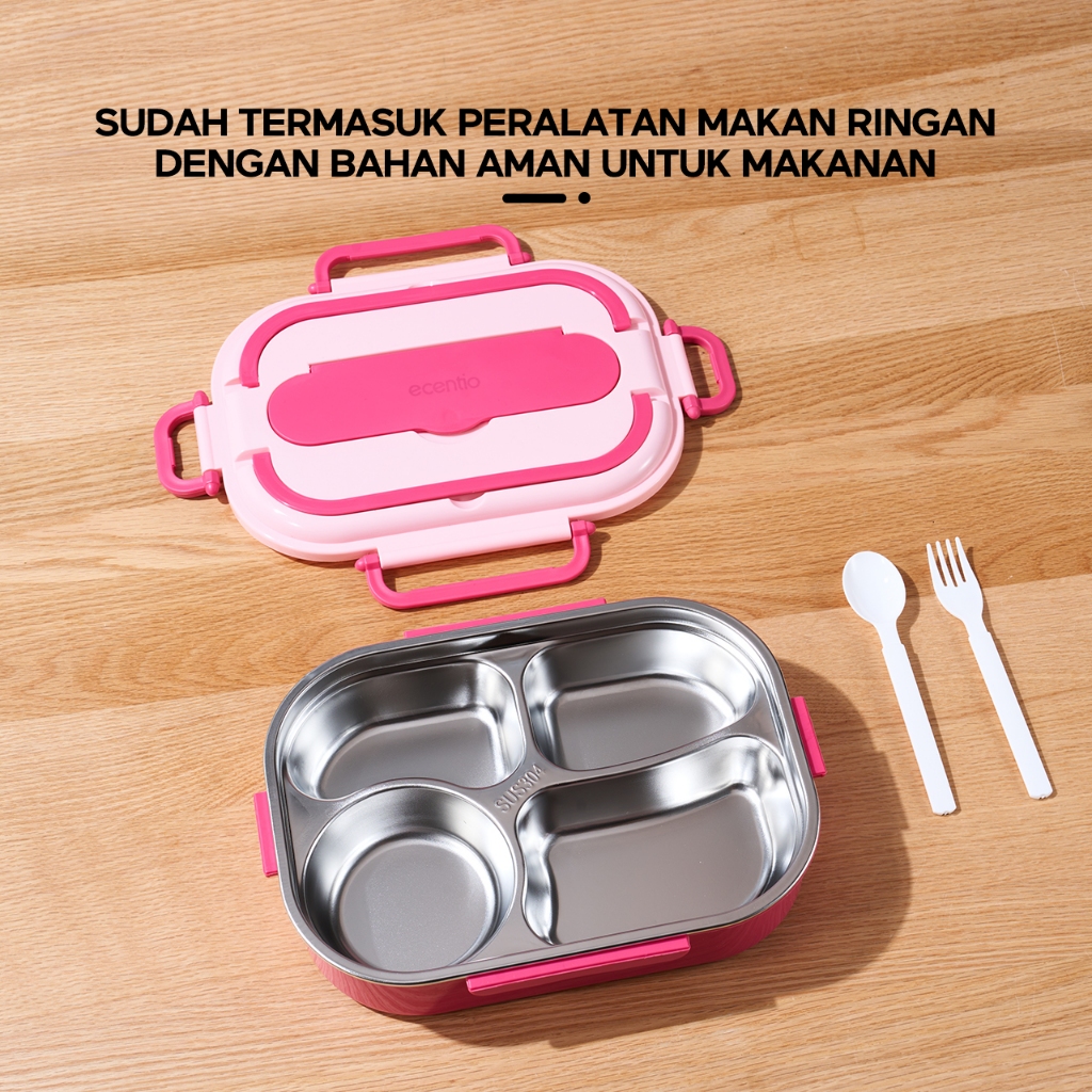 ecentio Kotak Makan stainless 4 Grid 1200ml anti tumpah lunch box stainless Portabel Tahan Panas kotak bekal stainless d