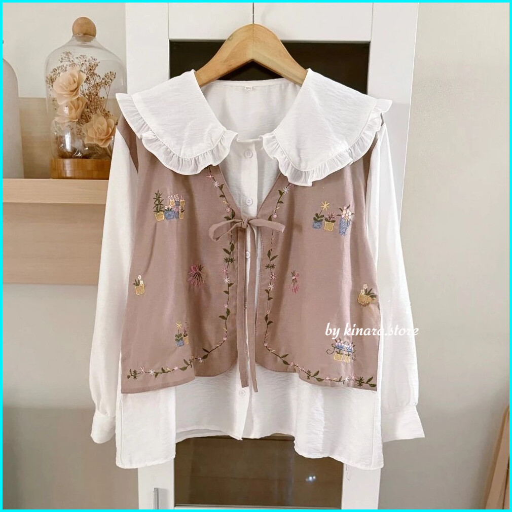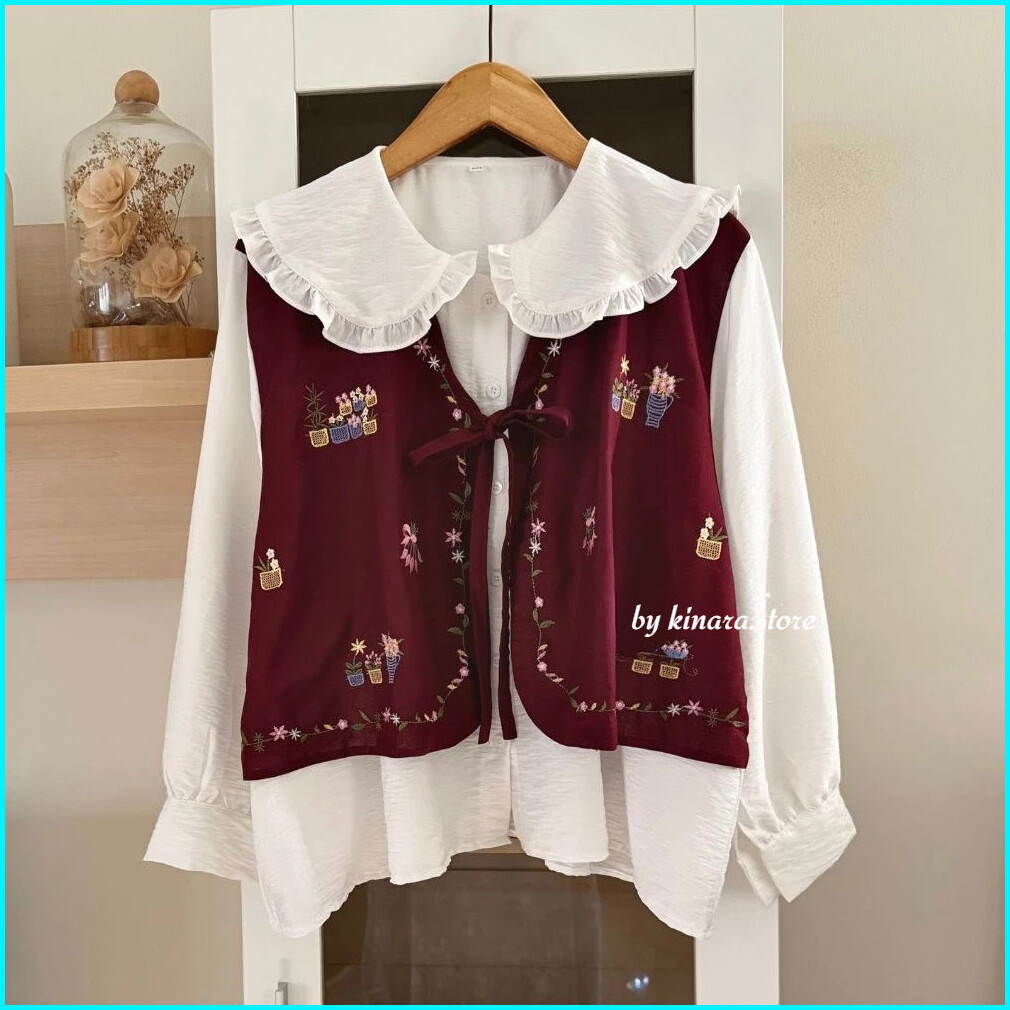 Delphia Blouse Atasan Bordir Korean Style Ld 120 110 Dst Atasan Wanita Lengan Panjang