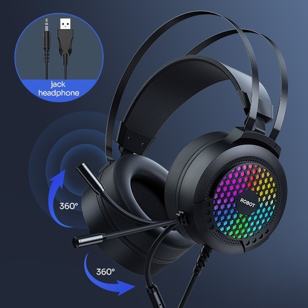 Robot RH-G30 Headphone Gaming with Mic 3.5mm USB RGB Light Wired Headset Original