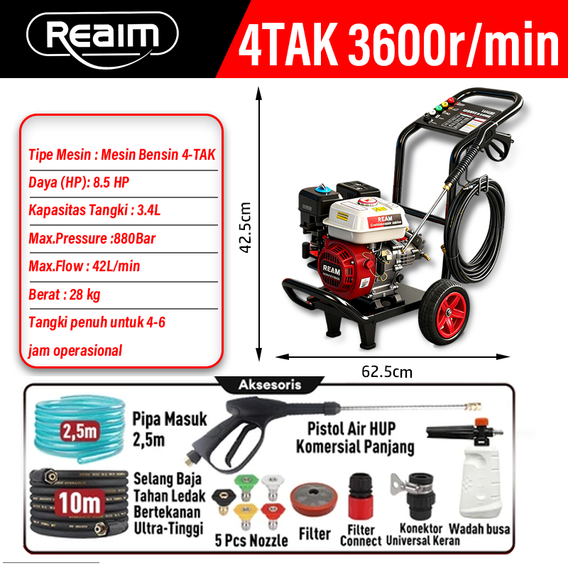 Reaim Jet Cleaner 4Tak Mesin Cuci Mobil Engine 900Bar High Pressure Cleaner Bensin