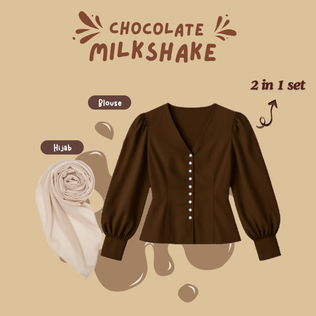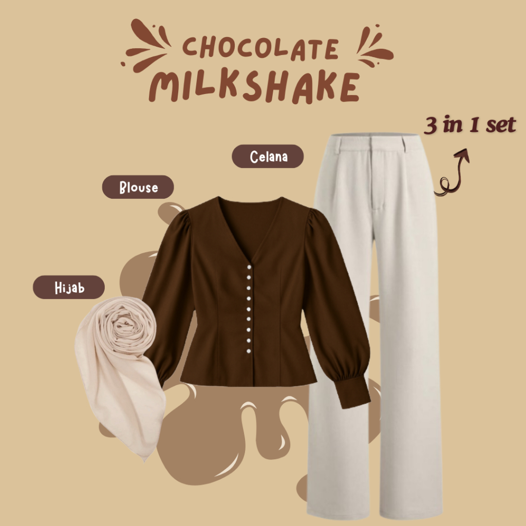 BAJU WANITA One Set Chocolate Milkshake Remaja Korea Kekinian Outfit Setelan Hijab SETELAN BAJU WANITA DEWASA