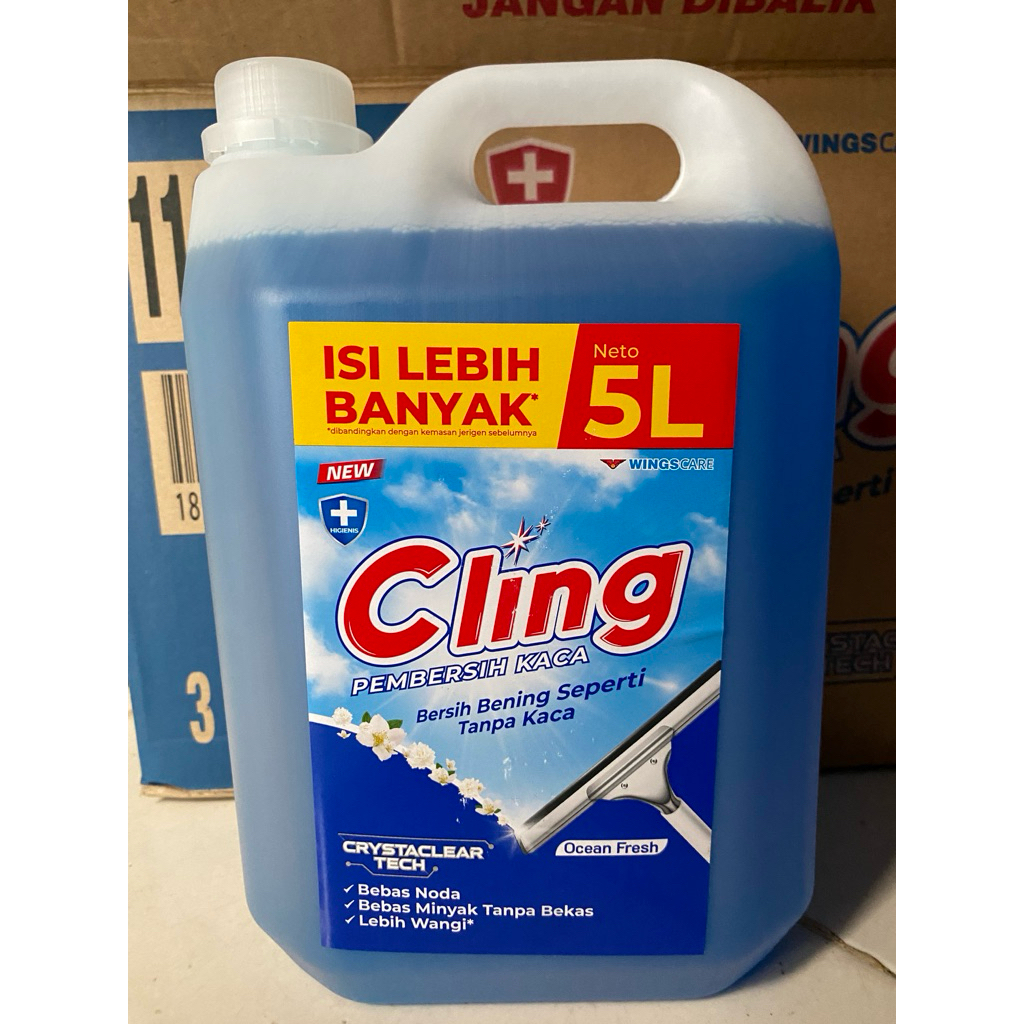 CLING Cairan Pembersih Kaca Ocean Fresh Kemasan Baru Jerigen 5 Liter Termurah Terlaris