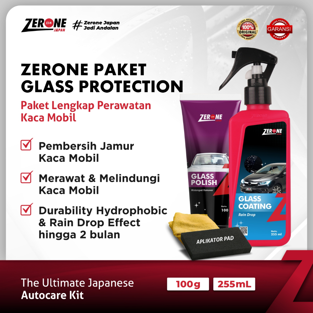 Zerone Japan Paket Glass Protection Pembersih Jamur Kaca Mobil Pelapis Kaca Anti Air Efek Daun Talas