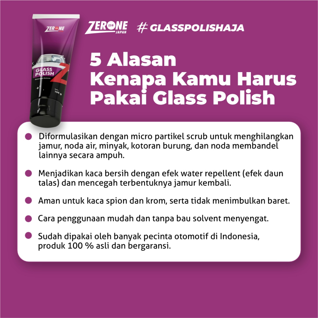 Zerone Japan Glass Polish Pembersih Penghilang Jamur Kaca Mobil Ampuh