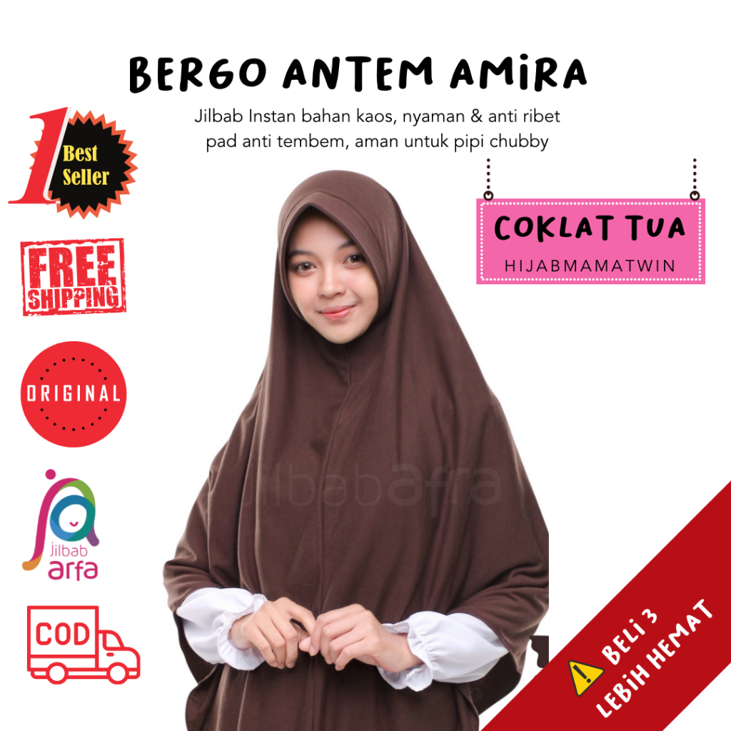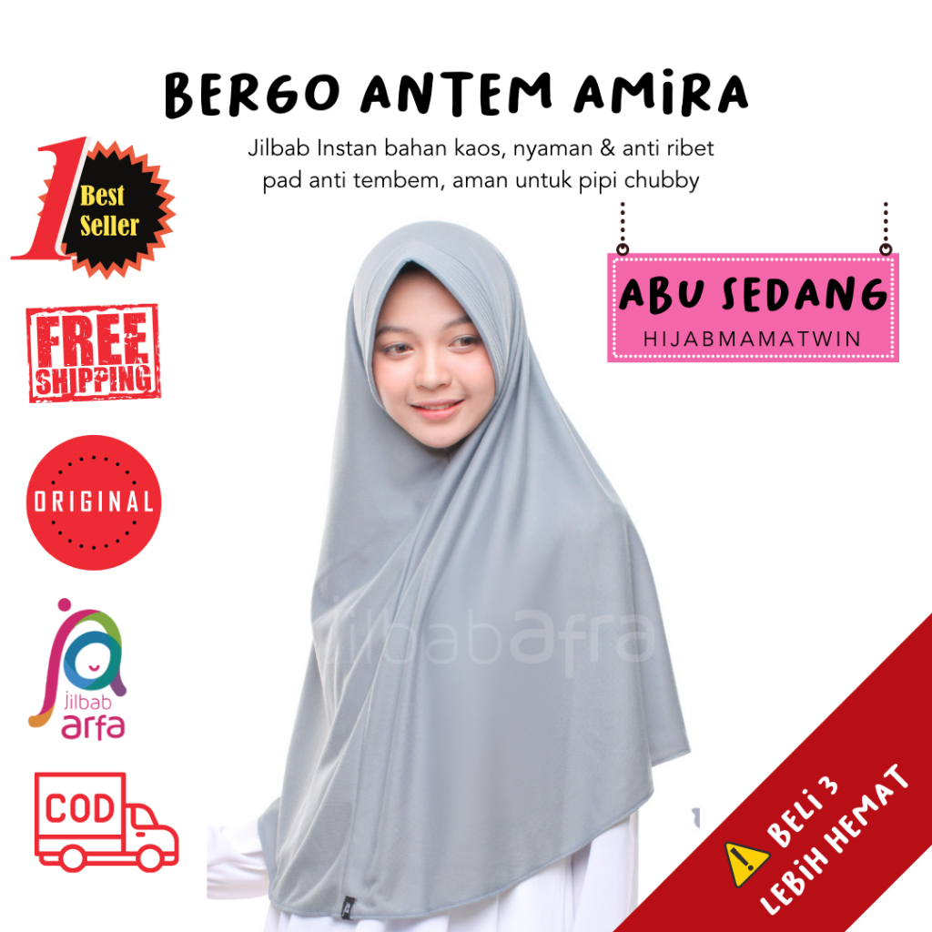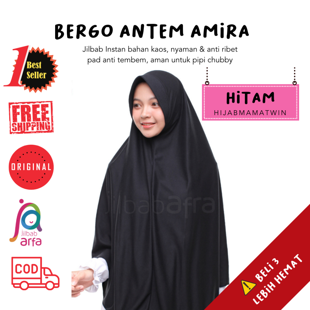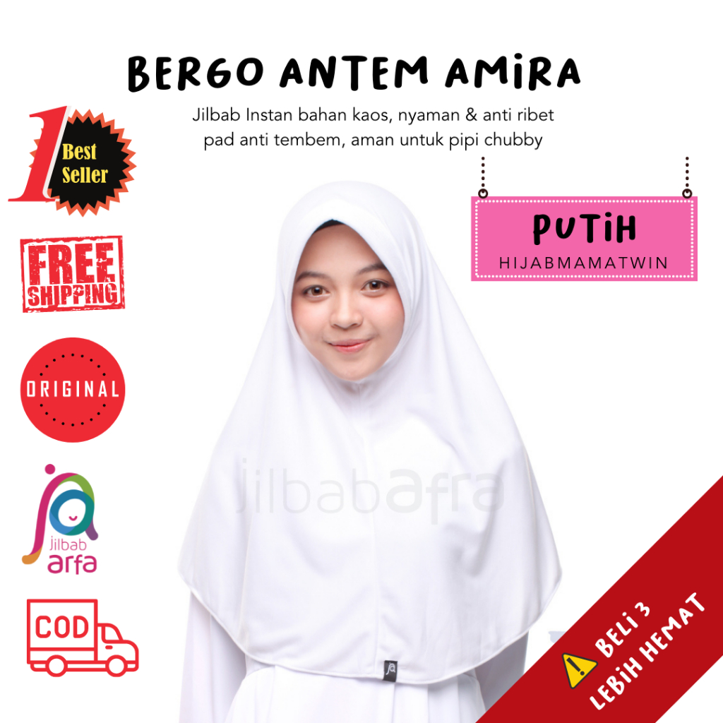 Kerudung Sekolah Jilbab Arfa Amira Pad Antem Ukuran M, L, XL, Jumbo Bergo Hitam Putih Abu Dongker