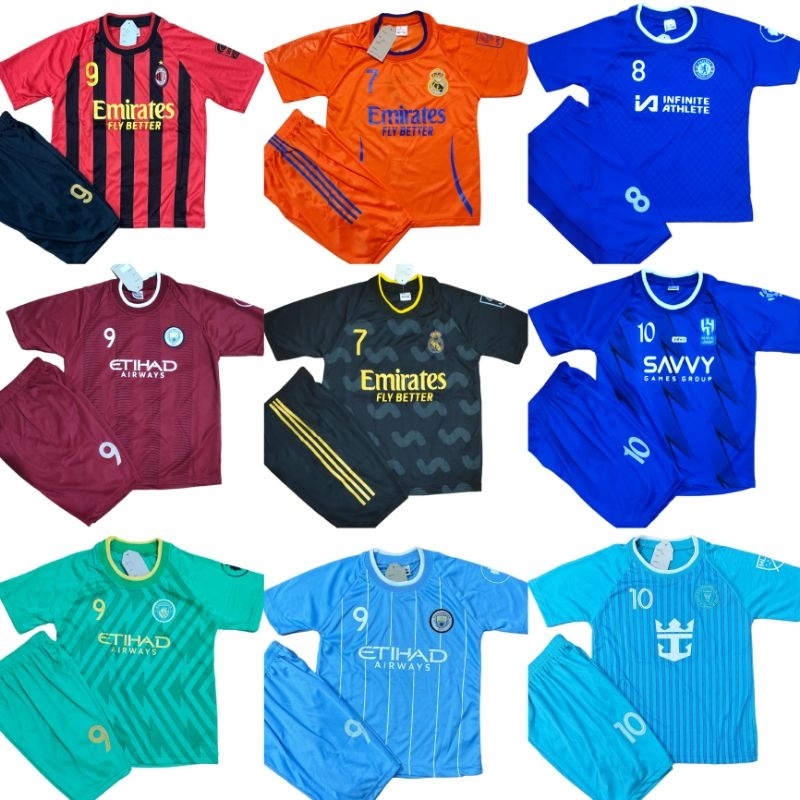 PAKET HEMAT (5PCS) SETELAN BAJU BOLA ANAK MOTIF CAMPUR TERBARU UMUR 6BULAN - 15TAHUN