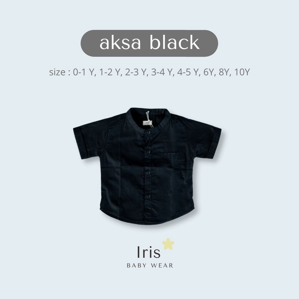 Iris Baby Wear - Atasan Kemeja Bayi Koko Anak Laki Laki Polos Linen Lengan Pendek Bayi Kemko Anak Hitam
