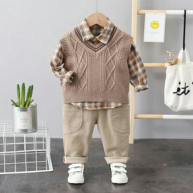Azkifa - Setelan Vest 3in1 Kemeja Baju Anak Laki-laki BestSeller