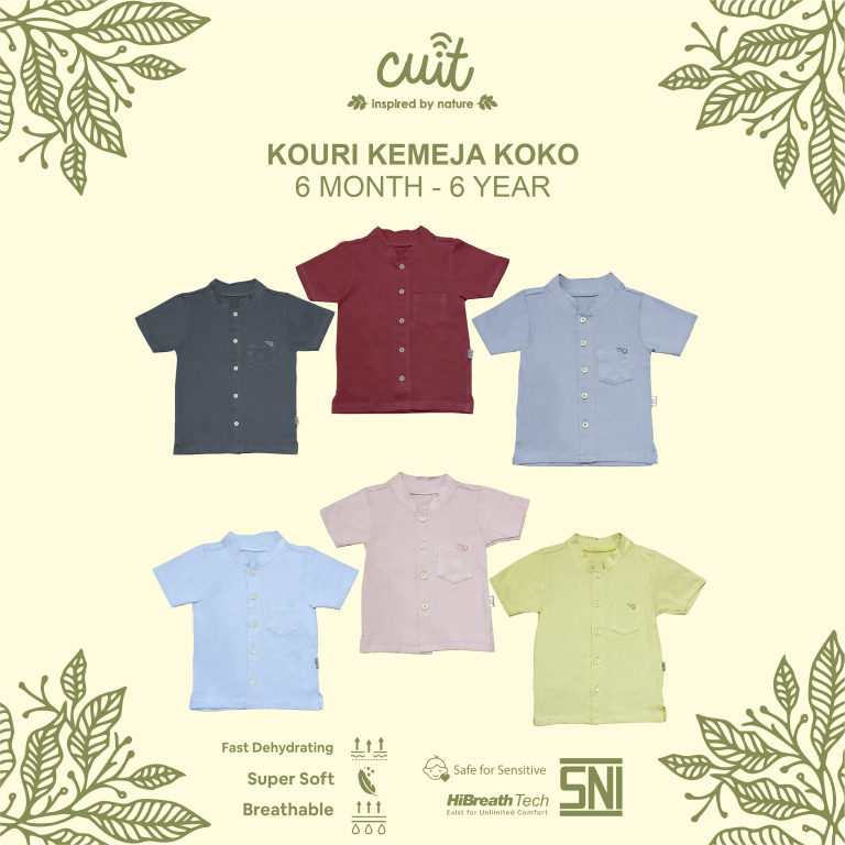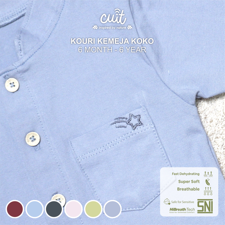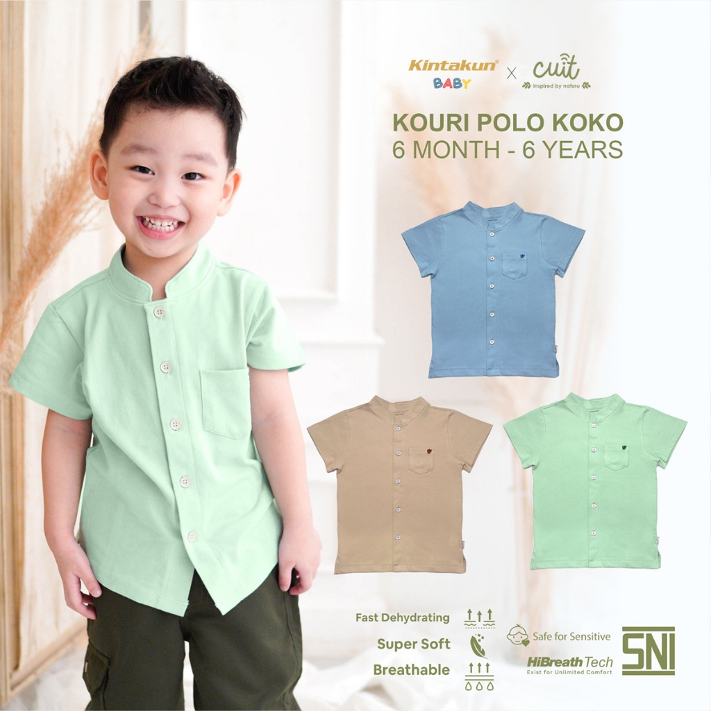 KINTAKUN BABY X CUIT Kouri Kemeja Kerah Shanghai Katun Anak Laki-Laki Tangan Pendek Polos
