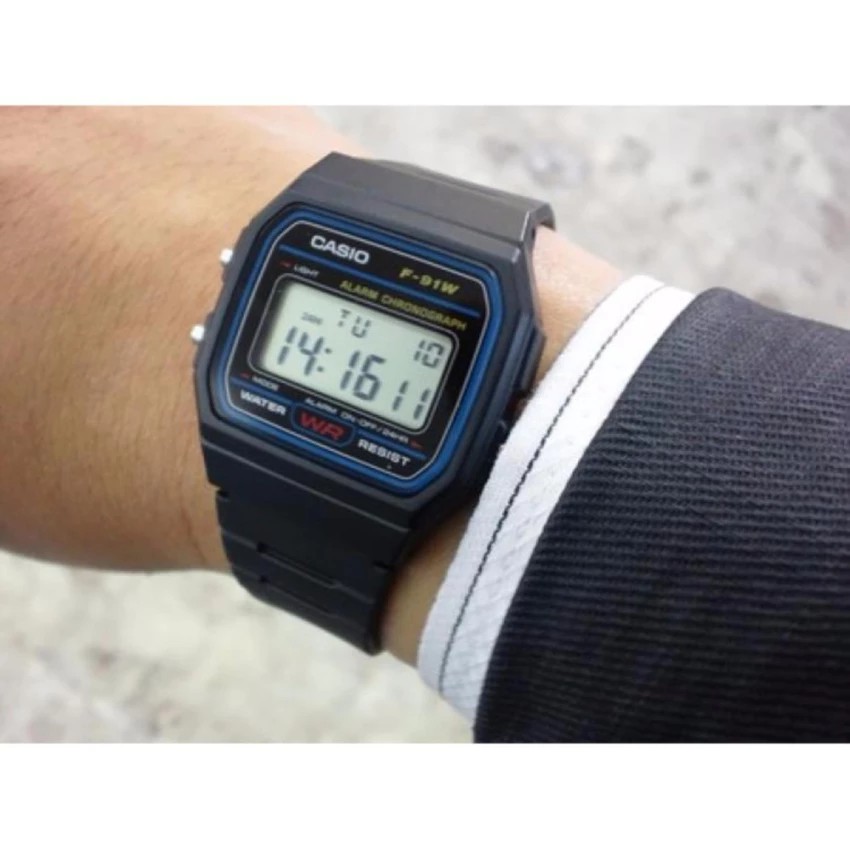 Casio General F-91W-1DG / F91W-1DG Jam Tangan Pria - Digital - Karet - Hitam Biru