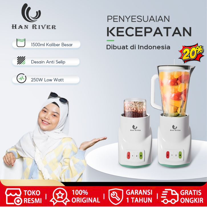 𝐇𝐀𝐍 𝐑𝐈𝐕𝐄𝐑 Blender Kaca Kapasitas 1 Liter Premium 2 In 1 Low 300 Watt Serbaguna