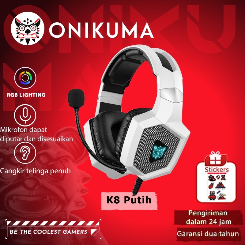 ONIKUMA K8 Putih Game Earphones PC Noise Reduction Earphones RGB Wired Earphones with Microphone Suitable for PC/Laptop/