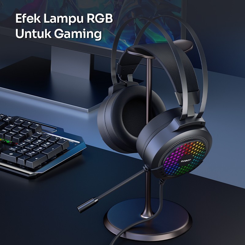 ROBOT Headphone RH-G30 Headset Gaming Wired 3D Black Stereo Sound RGB Light Garansi Original Resmi