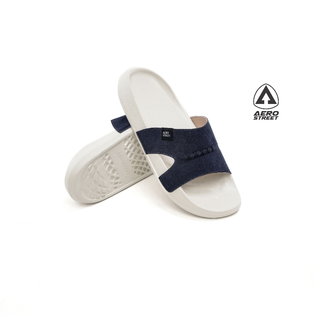Aerostreet 39-44 Xavier Off White Navy - Sandal Sendal Selop Slip On B1Baa