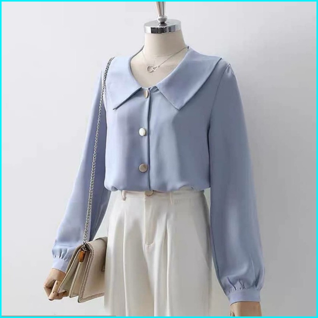 Outfit Sale - Aba Top Blouse Korean Full Button Beautycrepe Fit L Baju Atasan Remaja Wanita Muslim Terlaris