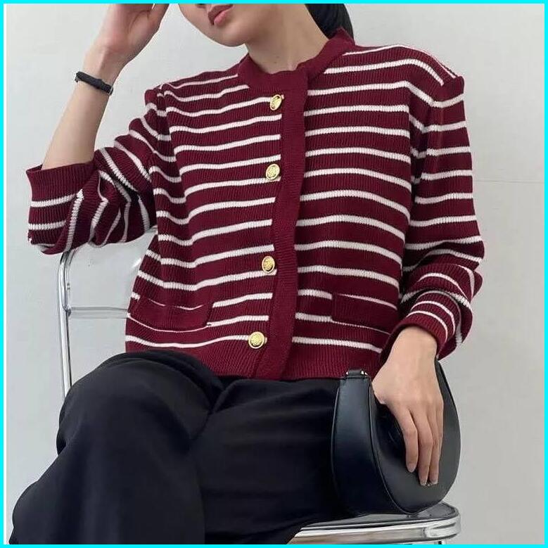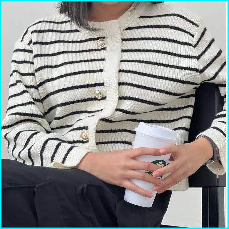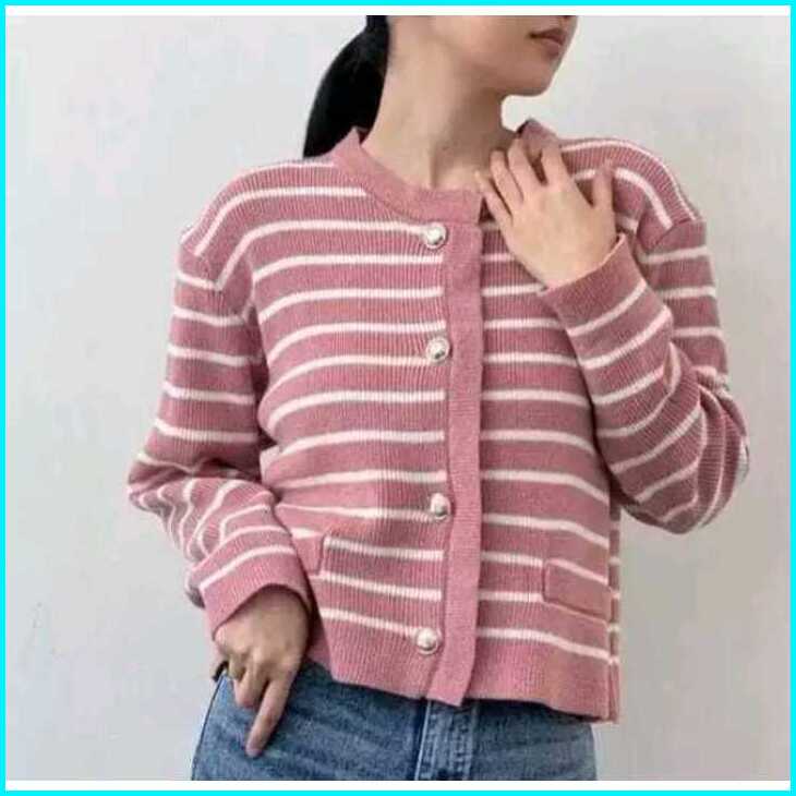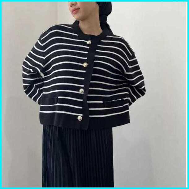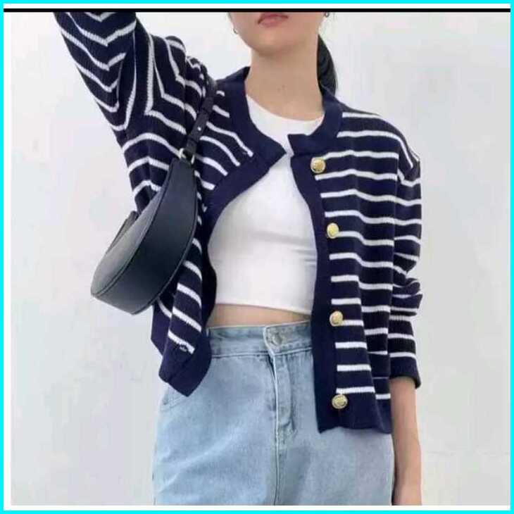 Knitopia.id - Crop Top Knit Motif Stripes - Rajut Atasan Lalisa Crop Oversize Motif Setrip Besar