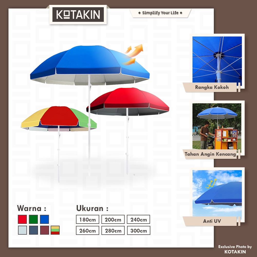 KOTAKIN Payung Tenda Jualan Bazar Diameter Jumbo Payung Pantai Cafe Anti UV Kokoh Warna Warni
