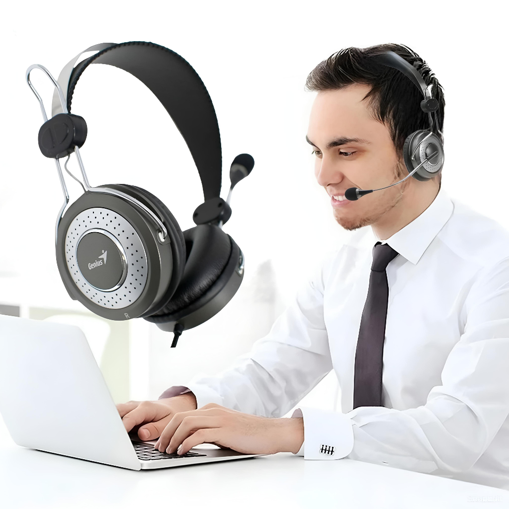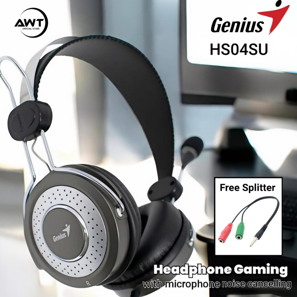 AWT Headphone Headset Gaming Microphone Genius HS04SU Super Bass Universal PC Laptop Hp Komputer