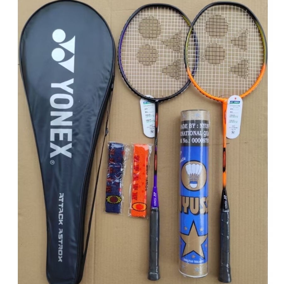Raket Badminton Paket Lengkap Dapat 2 Raket + 2 Grip + 1 Tas + 1 Slop Kock