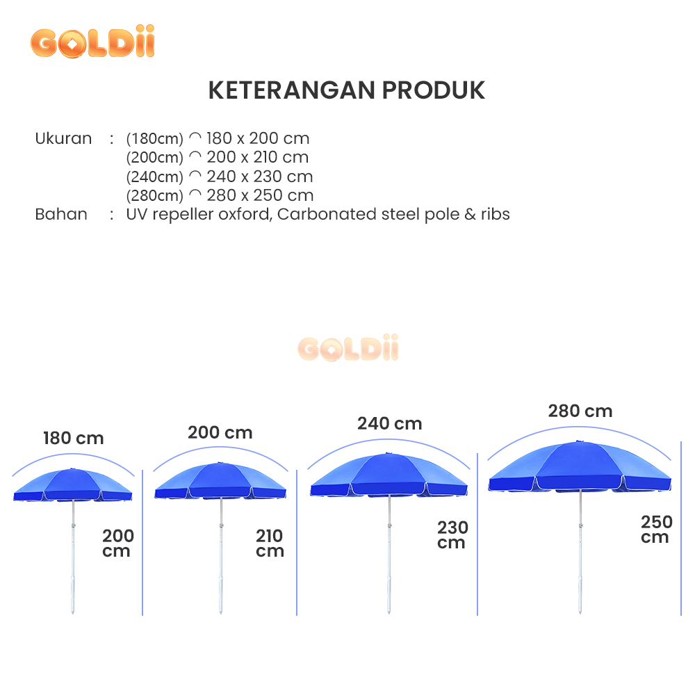 II - Payung Tenda Jualan 180CM/200CM Payung Pantai Taman Cafe Bazar Payung Parasol Anti UV