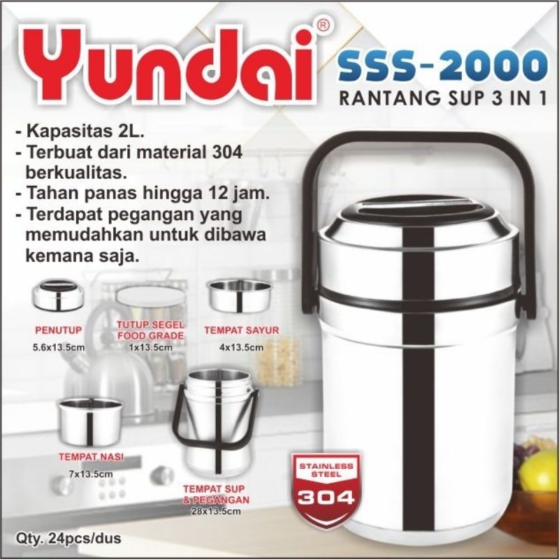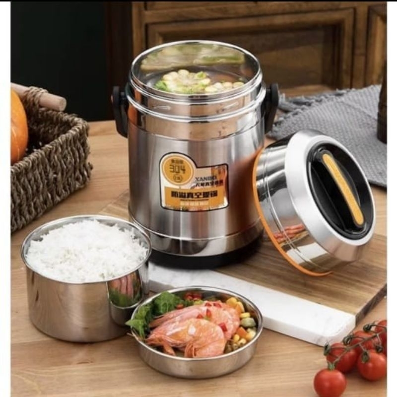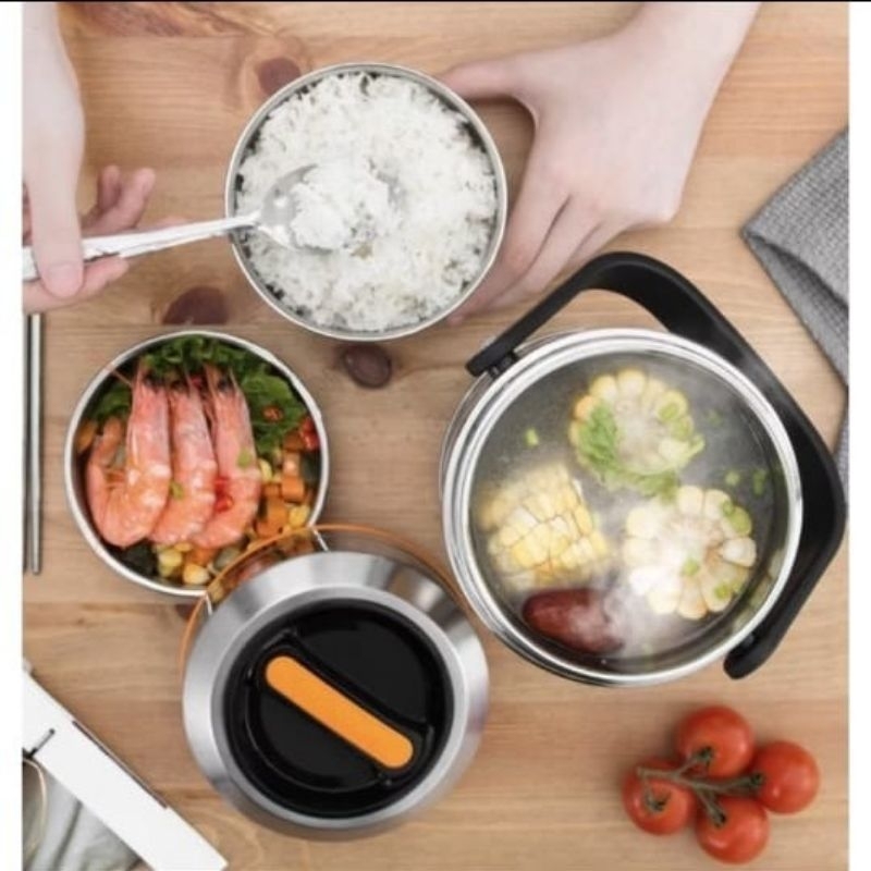 Kotak Bekal Portable 3 Lsan Stainless Steel 304 Tahan Panas / Rantang Kuah Bakso Anti Tumpah