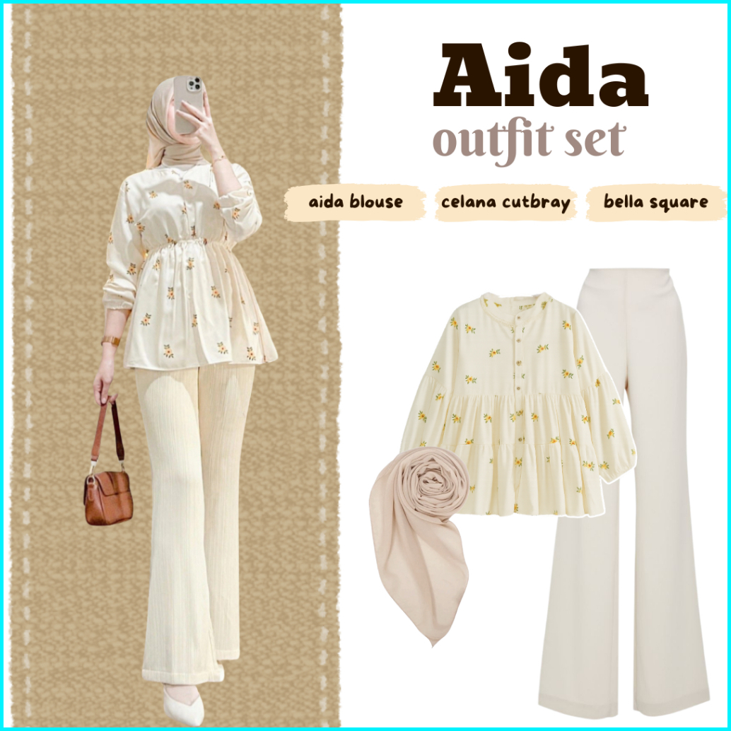 Ootd Hijab Kekinian Aida Blouse Celana Cutbray Hijab Bella Square One Set Remaja Casual Look Fs41
